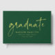 Celebrate your graduate’s milestone with this personalised graduation guest book, featuring "graduate" in elegant gold foil script on a rich green background. Customise it with the graduate’s name, school name, and graduation year in matching gold foil lettering for a stylish, sophisticated touch. The spine showcases the graduate’s name and grad year, while the back displays a full-bleed horizontal photo, making it a meaningful keepsake. Perfect for both high school and college graduates, this guest book is ideal for collecting heartfelt messages, advice, and signatures from family and friends.