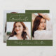 Announce your graduate's achievements and plans with this stylish, modern photo graduation announcement. The front of the announcement displays 2 photos - 1 horizontal and 1 vertical photo. "Graduate" is displayed in a trendy, handwritten white script with an olive green background. Personalise the olive green graduation announcement with the year and the graduate's name. The announcement reverses to display an additional photo with your custom text in white lettering. This 3 photo graduation announcement is perfect for high school or college graduations.