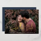 A modern save the date card designed to accommodate your favourite horizontal or landscape orientated full-bleed engagement photo. "Save the Date" appears near the bottom of your photo in gold foil handwritten script lettering, with your names, wedding date and location beneath. Personalise the back with additional details, such as your wedding website.