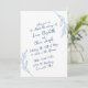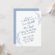 Modern simplicity meets whimsical romance. This wedding invitation features a beautiful mix of flowing handwriting inspired blue script on a crisp white background, accented with elegant botanical illustrations. A perfect match for your timeless love story.