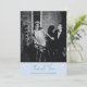 This wedding thank you card features a large couple photo with a soft blue panel below showing a flowing script "Thank You" and the couple's names. A heartfelt, colorful way to thank guests after the wedding that feels just as bold and joyful as the rest of the suite. Photo and all text are fully editable.