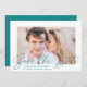 Announce your wedding date in style with our trendy modern photo save the date cards. The design displays your engagement photo with "Save the Date" in a teal handwritten script overlay. Personalise the front of the save the date photo card by adding your names, wedding date, and wedding location. The simple save the date photo card reverses to a teal and white dotted geometric pattern.