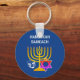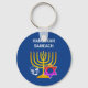 Modern, stylish HANUKKAH keychain, designed with faux gold menorah, colorful Star of David and white dreidel plus CUSTOMIZABLE GREETING - HANUKKAH SAMEACH, so you can create your own greeting, eg. Happy Chanukah. Ideal for Hanukkah season as favor giveaways or stocking stuffers. Choose from a wide section of Hanukkah clothing and gifts, designed by Berean Designs. Matching gifts available.