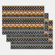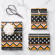 A modern Halloween pattern design in black, white and orange colours. It has geometric zigzags, polka dots, stripes and a Happy Halloween message. Shown here on gift wrapping paper sheets. Use to wrap a gift or to decorate for Halloween. it's a cute pattern for kids and adults!