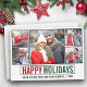 Modern Happy Holidays 5 Photo Collage Green and Red Holiday Card