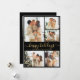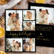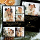 Modern Happy Holidays Black Gold 5 Photo Collage Holiday Card