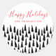 Modern Happy Holidays Black White Christmas Trees Classic Round Sticker