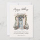 Modern script "Happy Holidays" watercolor front door decorated in holiday greenery image and extra space in the back for personal message flat holiday card.