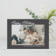 Modern charcoal and white holiday photo card with a photo layout, ideal for couples or families seeking a personalised and elegant way to share seasonal greetings. The design features a bold charcoal grey border that surrounds your custom holiday photo, creating a clean and refined look perfect for showcasing a cherished family portrait. At the bottom, add a personalised message and year, making it easy to customise for any family or couple. The back of the card displays chic hand drawn dark grey and white stripes, adding a stylish and cohesive finishing touch. This festive holiday card suits modern, minimalist tastes while offering a warm and heartfelt presentation. Perfect for sending Christmas, New Year, or winter holiday wishes with a contemporary, timeless aesthetic, this design is both visually appealing and highly versatile for a wide range of recipients and family styles. Available as printed cards or an instant digital download.