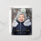 Send warm greetings with this modern Happy Holidays foil postcard featuring your favourite vertical photo bordered by delicate snow flurries. “Happy Holidays” is displayed in elegant gold foil calligraphy with your family’s name beneath. The back includes your return address and a custom holiday message, making it a stylish and convenient way to share seasonal cheer.