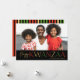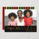 Modern Kwanzaa Photo Holiday Card with simple typography in traditional Kwanzaa colours. Modern striped backer.