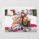 Modern new year holiday photo card features your favourite horizontal photo with "Happy 2024!" text overlay design with custom text and confetti shapes border. Personalise with a custom message and your names or family name. The back of the card features a black printed background colour (can be modified) with coordinating confetti pattern.