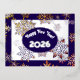 Modern happy new year, colourful snowflakes crysta foil holiday postcard