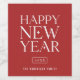 Modern Typography "HAPPY NEW YEAR", star accent serif bold type in white on chic red colour backing. Framed year and line for your name or business.