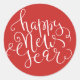 Modern Happy New Year White Script Custom Colour Classic Round Sticker