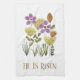 He Is Risen. Resurrection Sunday Easter kitchen towels with a beautiful modern floral design with purple and yellow Easter colours. You can change the text/font styles/colours.