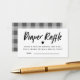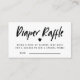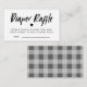 Modern and stylish diaper raffle ticket for your gender neutral baby shower. The text on top says "diaper raffle " in a modern font with request to bring any size diaper to win a special prize. The back of the card is grey gingham.