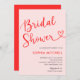 Modern Heart Calligraphy Bridal Shower Pink Red Invitation