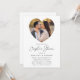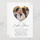 Simple couple's shower invitation featuring your engagement photo nestled inside of a heart-shaped frame on a white background. Personalise the photo couple's shower invites with your names and shower details shown below in black lettering with "Couple's Shower" displayed in a handwritten script.