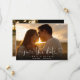 This elegant heart script photo save the date card features your photo and a script save the date above your names, date and venue. The reverse features an additional photo, message, and wedding website QR code on a black background. Designed by Thisisnotme©