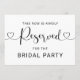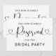 Reserve front-row seating for your closest loved ones with this modern heart script "Reserved for the Bridal Party" sign. The landscape orientation and flowing calligraphy with heart flourishes make a graceful statement hung on ceremony chairs or pew ends. Ideal for reserving rows for the bridal party, family, or VIP guests. All text is fully customisable.