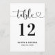 Modern Heart Script Wedding Table Number