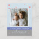 A modern birth announcement with hanging hearts and stars with your favourite photo on baby blue with birth information. The back of the card you can customise or delete the text for the handwritten message. JMR_Designs@yahoo.com if you need assistance or have any special requests.
