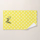 This towel set is a bold and contemporary addition to elevate your bathroom decor. Featuring a striking polka dot heart design in white on a black background. The hand towel has white hearts on a yellow background, adding a burst of modernity and style to your space. Add your own initial, creating a unique and customised touch. On the reverse side of the towels is white with no pattern.