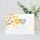 A bold and modern RSVP design for a nontraditional couple! Response card is adorned with a pattern of hearts in bright sunshine yellow and neutral grey. Backside includes room for additional text, or a wedding website address.
