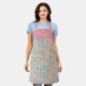A colourful pattern with shades of pink, gold, and blue. Add your name to personalise this apron. A colourful design with a cute heart to make the monogram special.