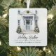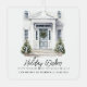 Modern script "Holiday Wishes" watercolor front door decorated in holiday greenery image metal ornament. Makes a perfect gift to say thank you to your customers.