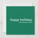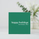 Simple, stylish "happy holidays" quote greeting card with modern typography in white on a rich green background in a minimalist 'scandi' scandinavian design style. The card can be easily personalised with your own holiday greeting, family name and year to make a truly bespoke christmas holiday card for the festive season!
