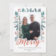 Modern Holly and Pine Merry Christmas Script Photo Holiday Card