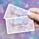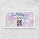 This modern holographic business card features your name or business name in elegant script typography set against a trendy iridescent glitter background. This business card is perfect for professionals in the beauty industry and beyond (esp. makeup artist, nail specialist, beauty salon owner, hair stylist, beautician, aesthetician, and more). You can personalise the front with your name and title (or website address/location) and add your contact information (including website address and social media accounts), scannable QR code and "connect with us" text on the back.