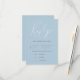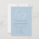 Modern and simple wedding RSVP card featuring a faux holographic hand written script that says "reply" on a dusty blue background. This response card also lists the entree selection for guests to choose from. This minimalistic design works for any season!