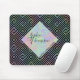 Professional abstract symmetric holographic illustration in rainbow pastel shades; your name and text written with trendy typography calligraphy script.