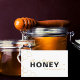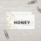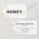 The front features the bold “Pure Organic Honey” logo, accompanied by a whimsical bee trail detail and a tagline space for your custom message—ideal for highlighting your service, product, or mission. The reverse side features your name, title, and contact information, presented clearly for easy readability. The golden hexagonal honeycomb patterns add a subtle, professional design element that ties the look together seamlessly.