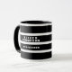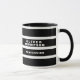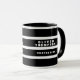 Horizontally striped design... modern large horizontal stripes with editable name and profession... a nice and personalised black and white coffee-mug