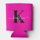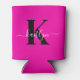 This simple, elegant hot pink can cooler with your first name in a trendy script font in white and your first initial in a modern cap font in black is perfect for you. It's stylish and trendy and yet very classic. Get a bunch for when you're entertaining. Guests will be able to keep their drinks nice and cold.
