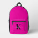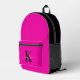 Modern Hot Pink Black Script Monogram Printed Backpack