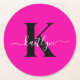 These simple, elegant hot pink round paper coasters with your first name in a trendy script font in white typed over your first initial in a modern cap font in black are perfect for keeping your tables and counters free from water rings. They absorb droplets so you don't have to worry when your entertaining or enjoying a drink. They're stylish and trendy and yet very classic.