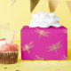 This wrapping paper features modern faux gold foil dragonfly pattern on hot pink background.