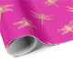 Modern Hot Pink Gold Dragonfly Pattern Wrapping Paper