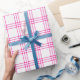 A wrapping paper designed with a modern hot pink plaid pattern on white in large size. Customise the white background among other options.