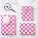 Modern Hot Pink White Chequered Wrapping Paper Sheet