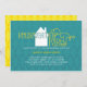 Cute yet modern, this Housewarming party invitation features bright blue and yellow colours in face fonts and a lovely damask pattern.