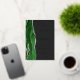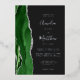 The left-hand edge of this elegant modern wedding invitation features a hunter green watercolor agate border trimmed with faux silver glitter. The customizable text combines handwriting, copperplate and italic fonts in real silver foil on an off-black background. The reverse side features a matching green and silver agate design.