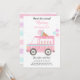 This cute invitation features a hand painted watercolor ice cream truck with ice cream treats and balloons in pastel colours.