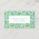 Modern ikat pattern in green, blue and white, stylish and elegant. professional personalised business card for graphic designer, fashion boutique, textile company and more.