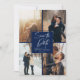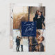 Take your 5 best images from your engagement photo session with 4 for the front and one for the back. It features a hand lettering design that says Save the Date.